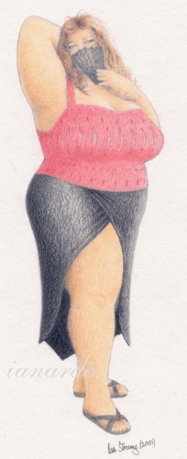 Even the artist does not know who this stunning lady is! She epitomises the appeal of cuddly curvaceous ladies.